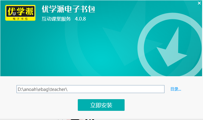 2. 安装程序默认选择安装在D:\anoah\ebag\teacher\目录下,如非必要请勿调整;如遇特殊情况需要更改安装目录,请保证目录使用全英文的命名规则;