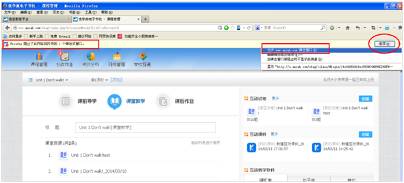 情况1:查看页面顶端是否有页面被阻止的提示,点击“选项”,选择“允许www.anoah.com”弹出窗口: