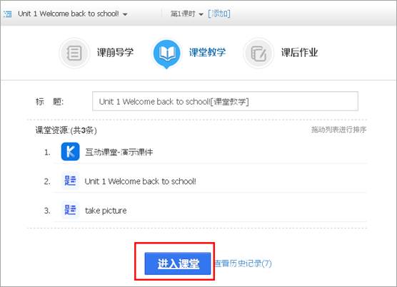 5、登录之后,在“课堂资源“界面查看本节课的课堂资源。